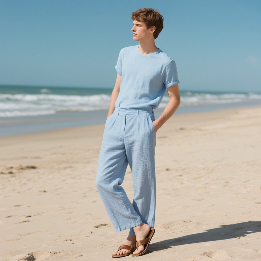 Men’s Light Blue Slim Fit Chinos Pants Casual Weekend Pant