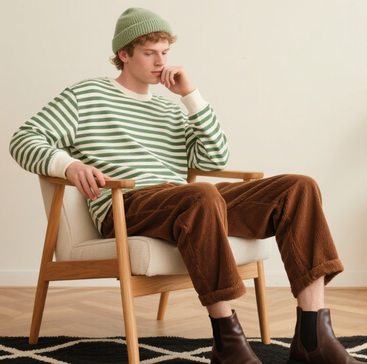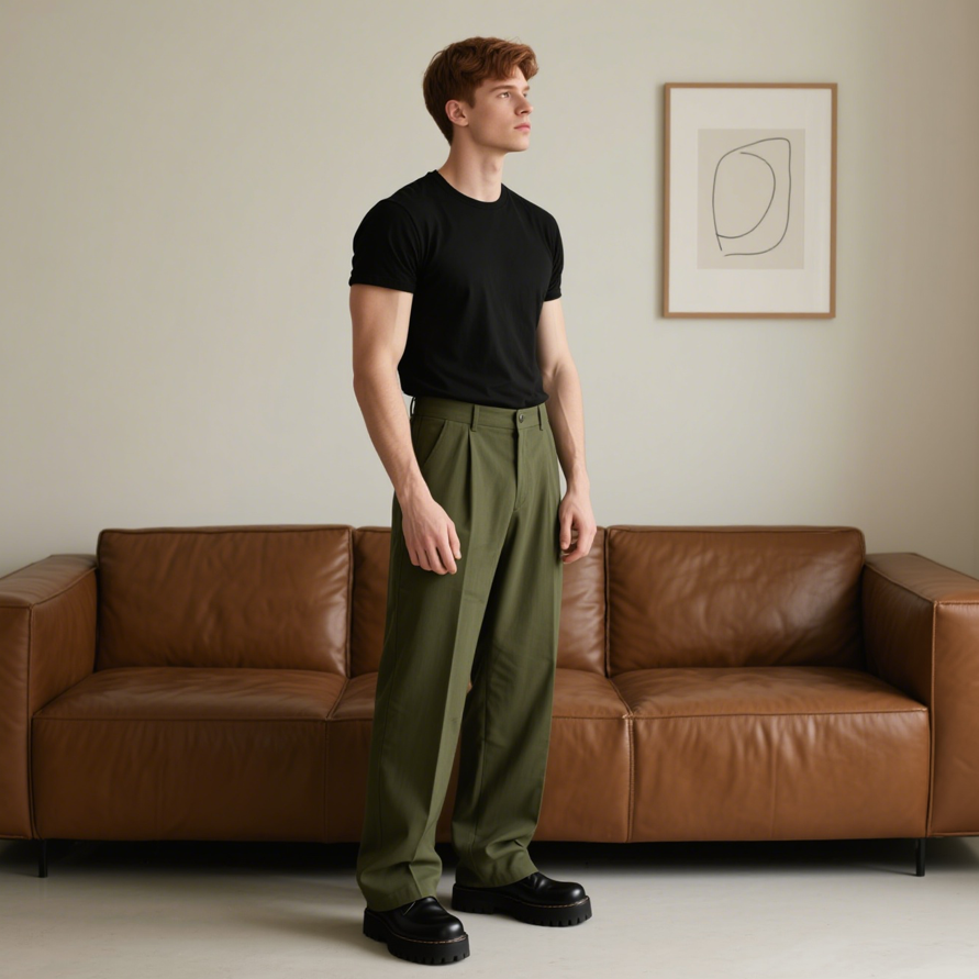 Men’s Beige Wide Leg Pants Vintage Relaxed Fit for Casual Weekends