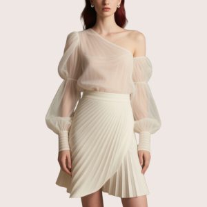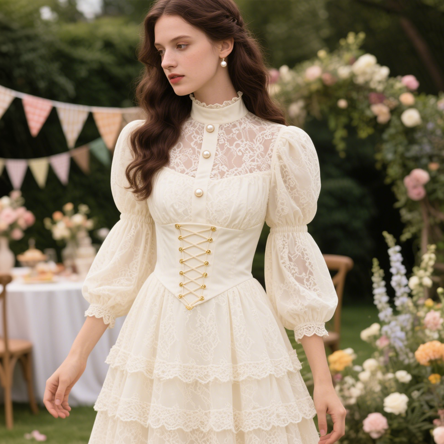 Ruffle-Paneled Exquisite Long-Sleeved Dress