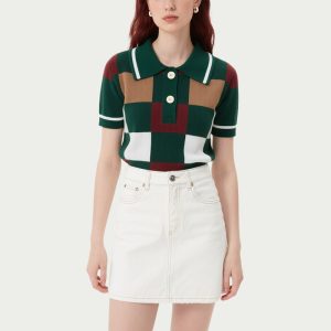 Men’s Burgundy Black & White Striped Polo Shirt Short Sleeve Retro Fashionable Outfits