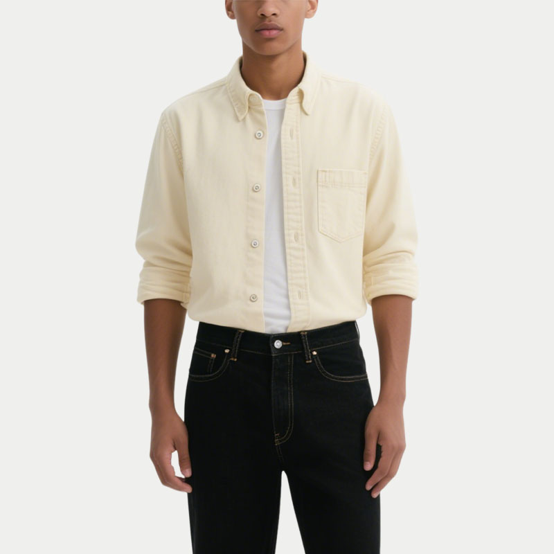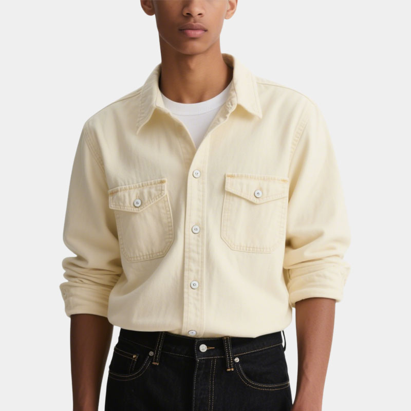 Pastel Yellow Men’s Long Sleeve Shirt Relaxed Fit for Stylish Casual Comfort