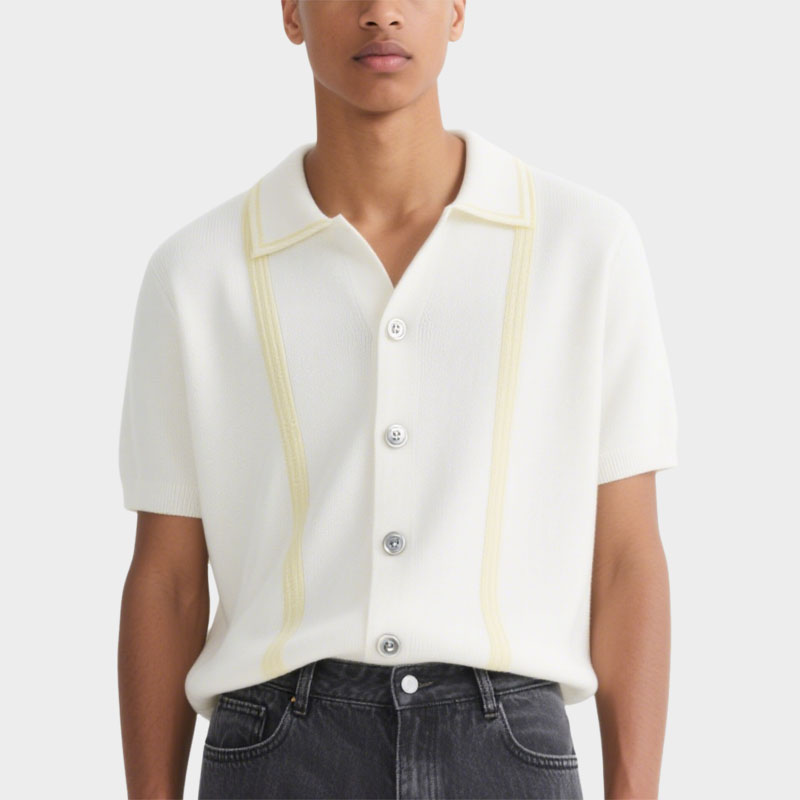 Men’s White Knitted Short Sleeve Polo Shirt with Yellow Trim