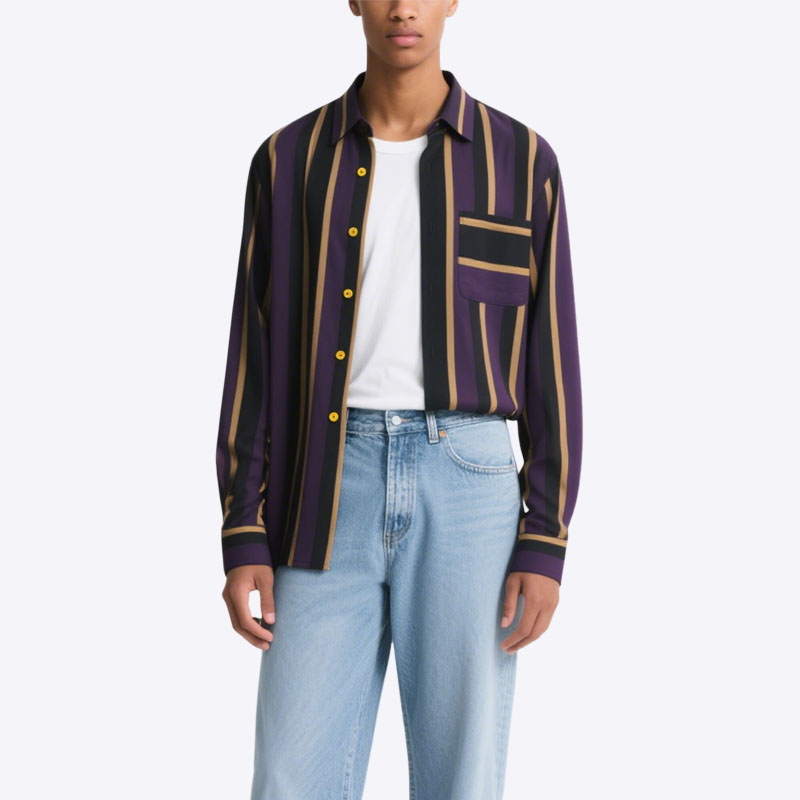 Vertical Stripes Men’s Long Sleeve Shirt Modern Classic Versatile
