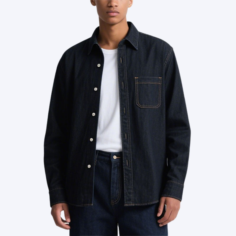Navy Blue Heavyweight Denim Men’s Long Sleeve Shirt