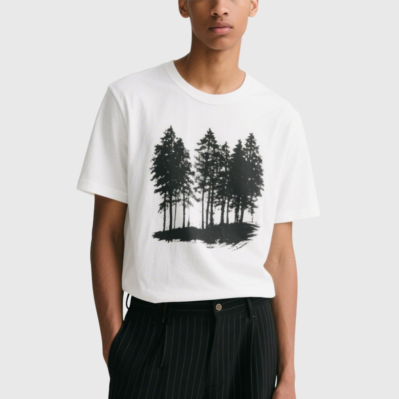 Men’s White Short Sleeve Cotton T-Shirt Casual Nature