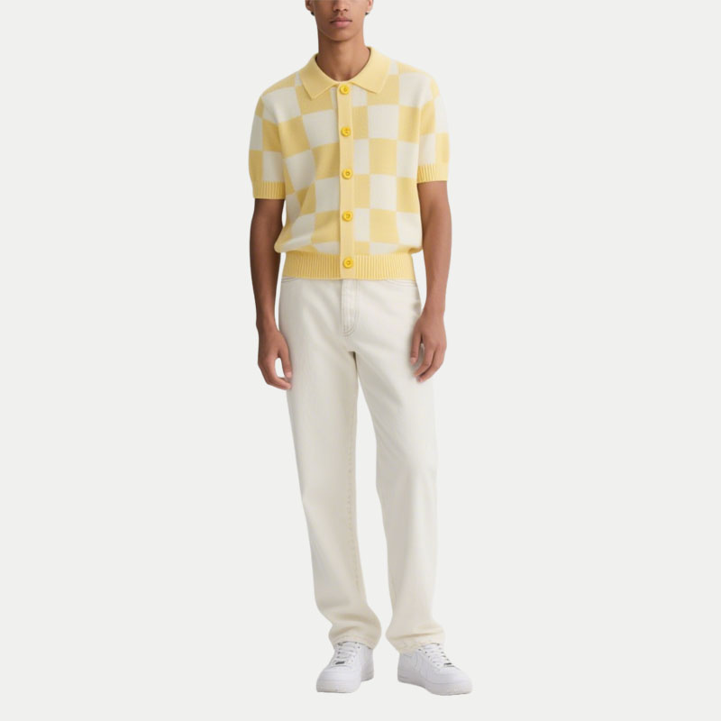 Men’s Yellow Checkered Knitted Polo Shirt Short Sleeve Trendy