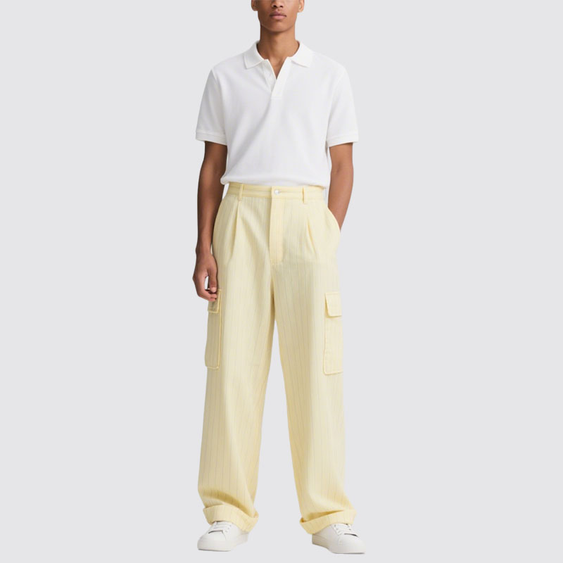 Men’s Light Yellow Cargo Wide Leg Pants for Casual Outfits