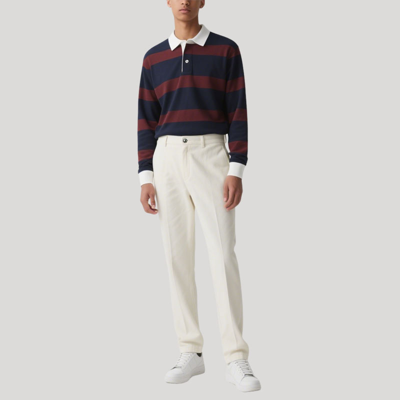 Men’s Navy & Burgundy Striped Rugby Polo Long Sleeve