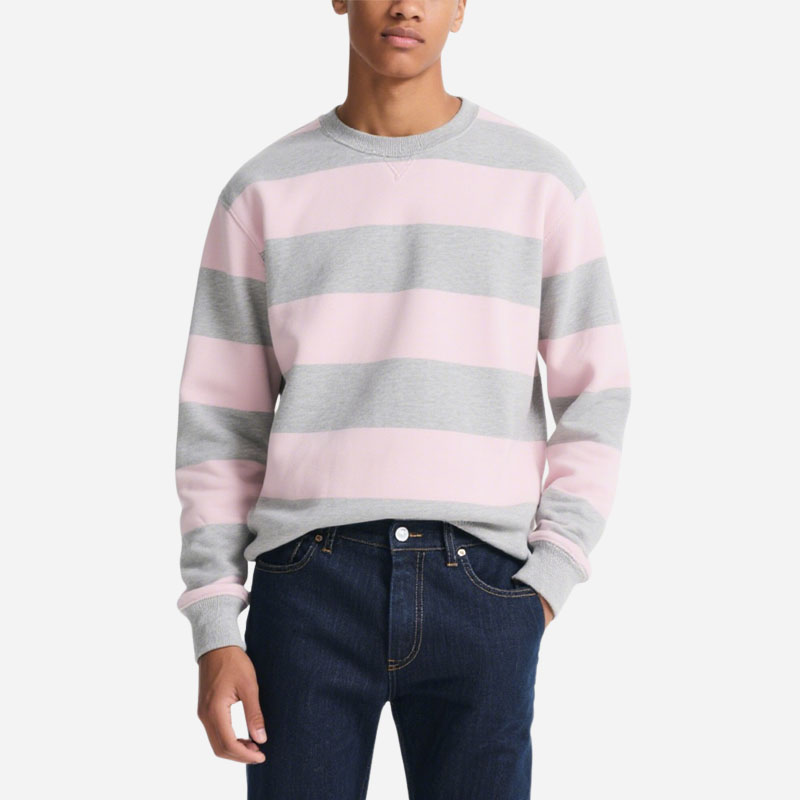 Men’s Pink & Gray Striped Crew Neck Sweatshirt Soft Trendy