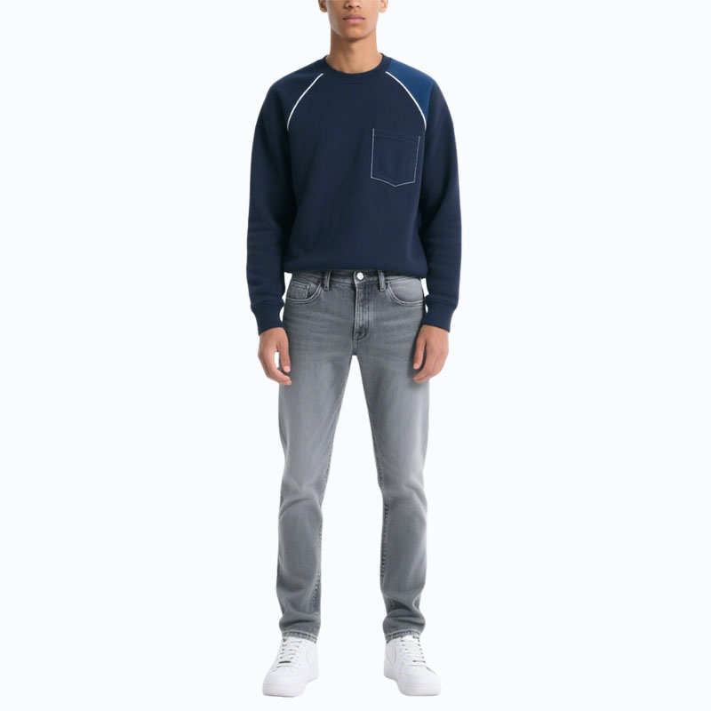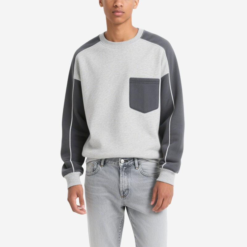 Men’s Light Gray Crew Neck Sweatshirt with Contrast Pocket Modern Casual Look