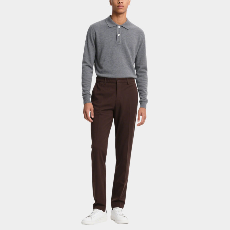 Men’s Gray Long Sleeve Polo Sweater Button Up Elegant Knit for Casual Looks