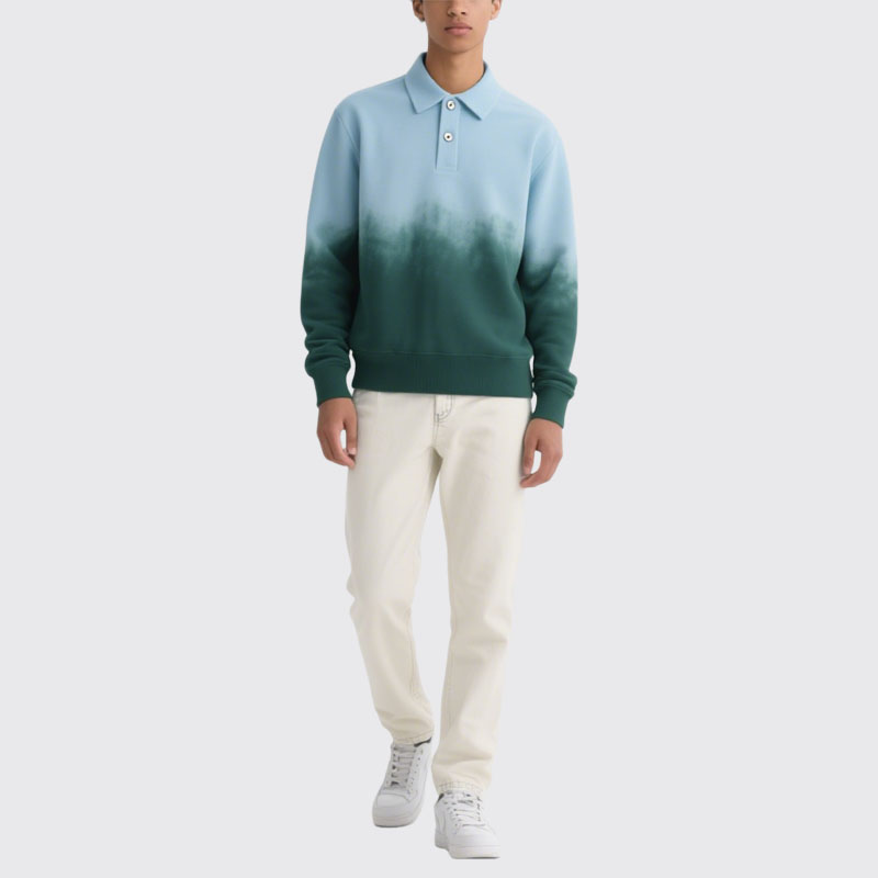 Men’s Ombre Polo Sweatshirt Long Sleeve Fashion Casual