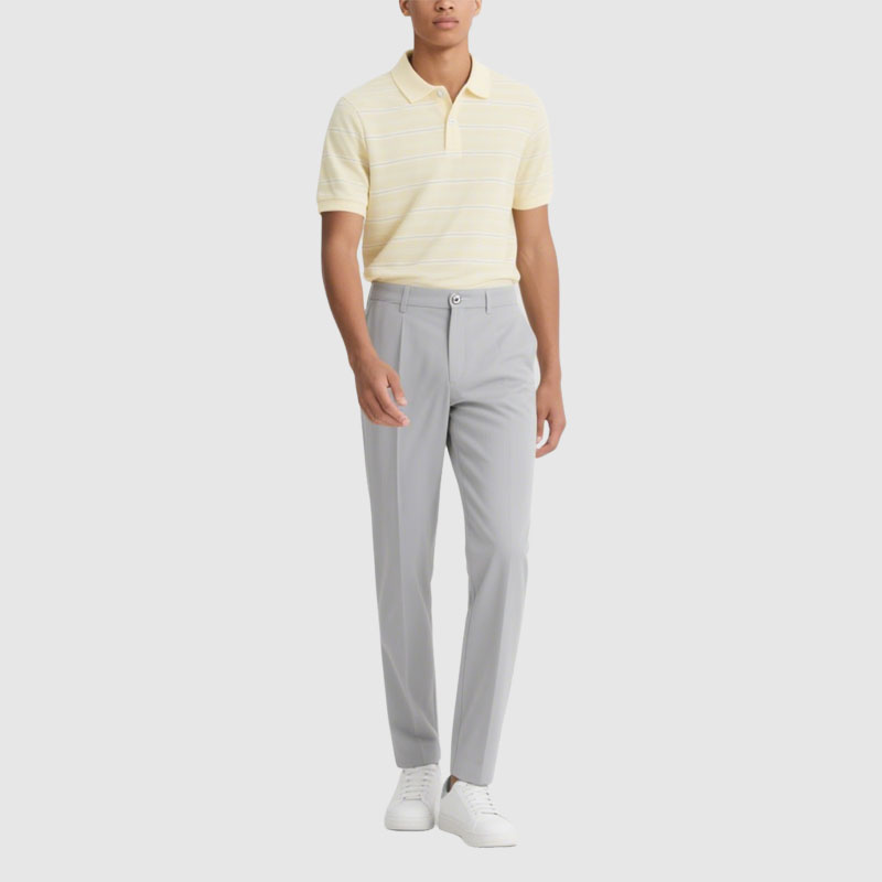 Men’s Light Yellow Striped Polo Shirt Short Sleeve Classic Breathable Casual Wear