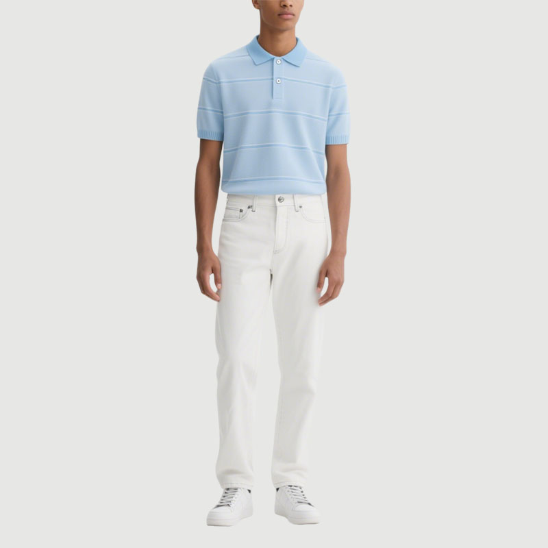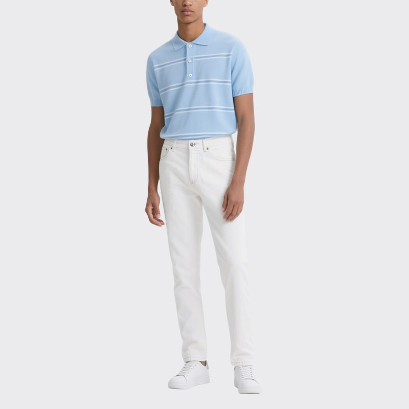 Men’s Light Blue Striped Knit Polo Shirt Short Sleeve Slim Soft Casual