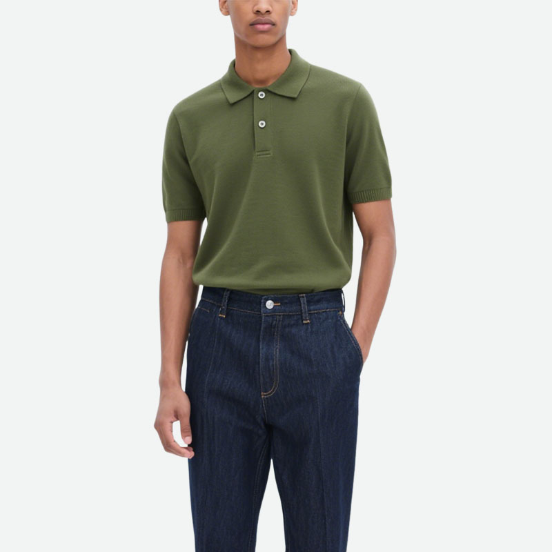 Men’s Olive Green Knit Polo Shirt Short Sleeve Classic Polo