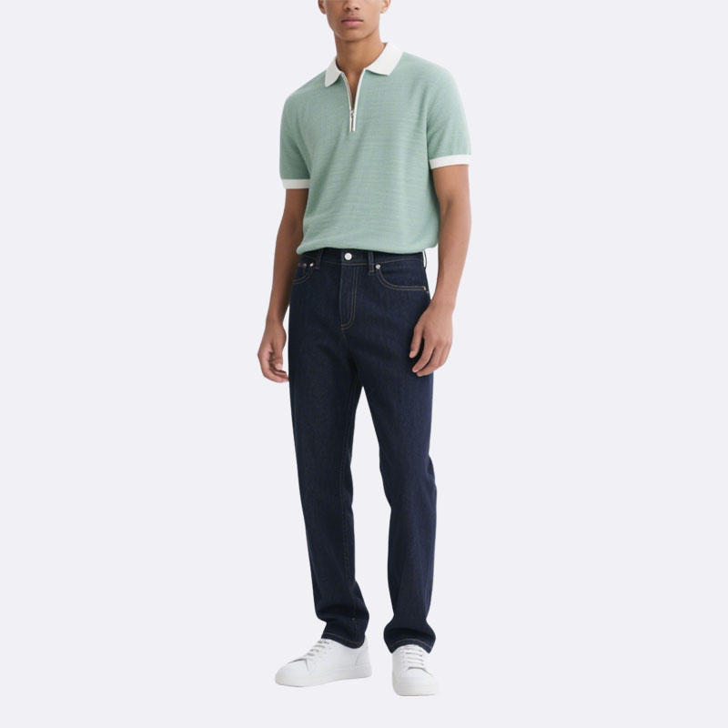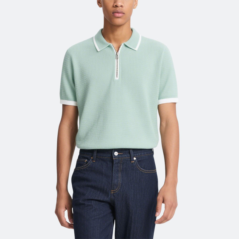 Men’s Light Green Knitted Polo Shirt with Zip Front Short Sleeve