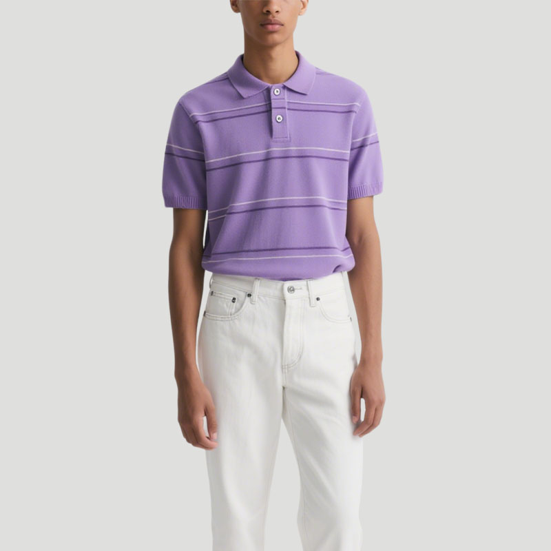 Men’s Purple Striped Knitted Polo Shirt Short Sleeve