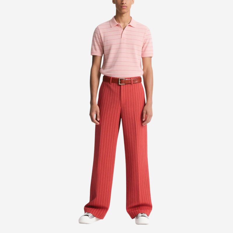 Men’s Pink Striped Polo Shirt Short Sleeve Regular Fit