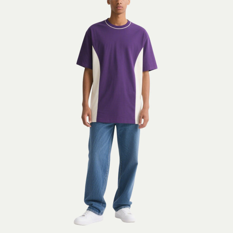 Men’s Purple and Beige Color Block Short Sleeve T-Shirt Loose Fit