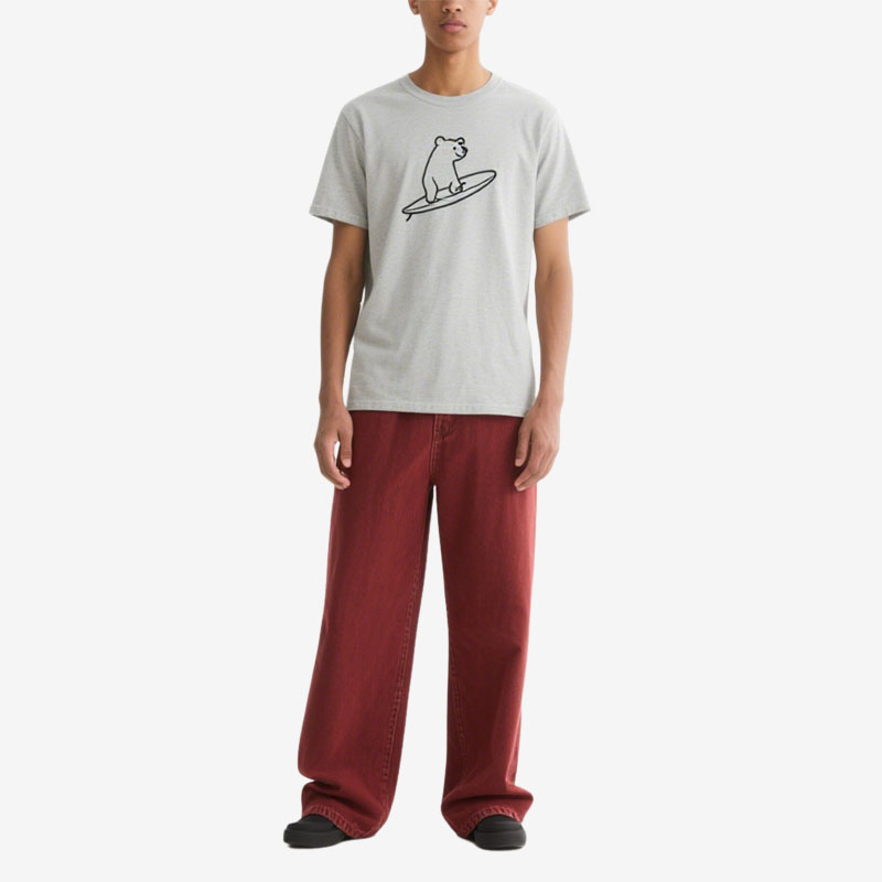 Men’s Light Gray Short Sleeve T-Shirt with Surfing Polar Bear Graphic