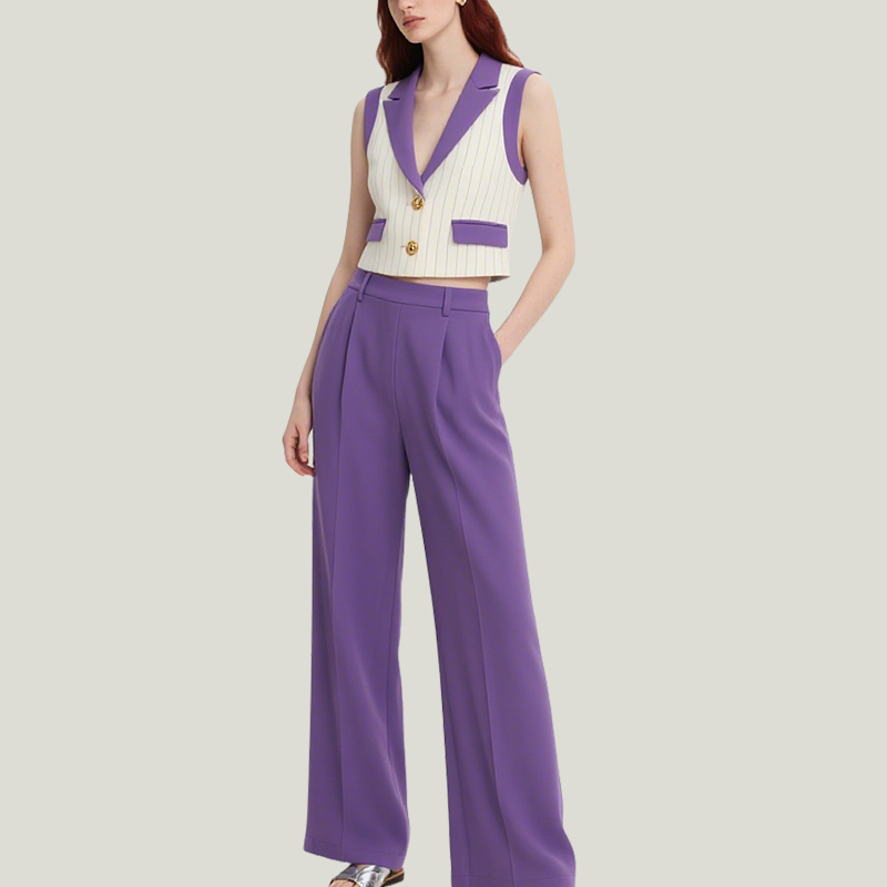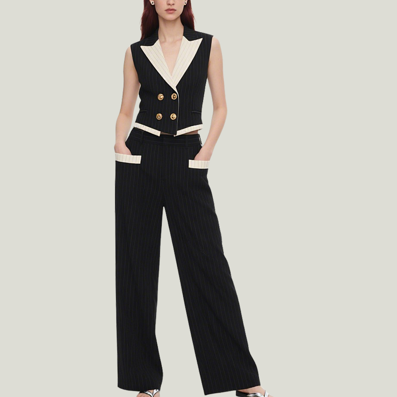 Women’s Fashionable Waistcoat Wide-Leg Trouser Suit For Commuting