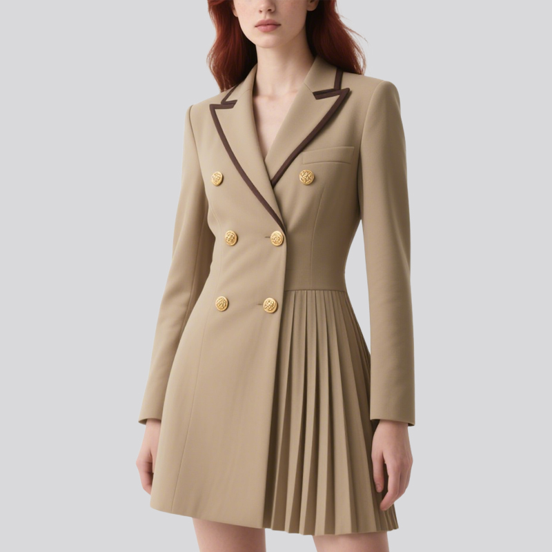 Women’s Exquisite Long-Sleeved Dress with Pleated Trim