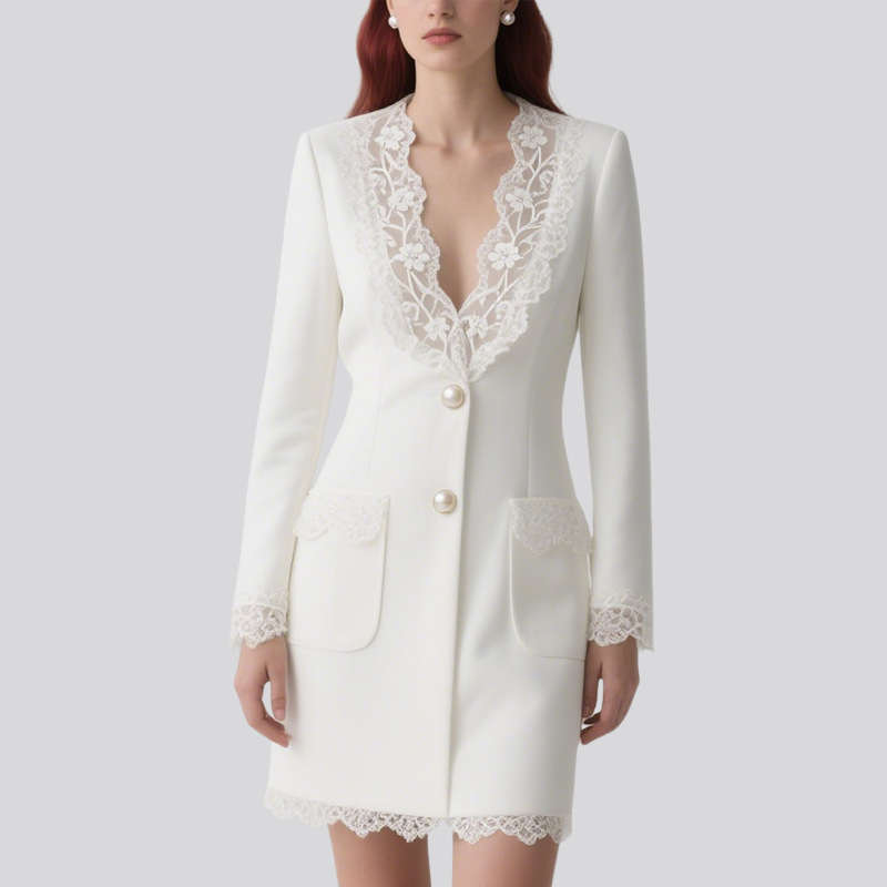 Women’s Elegant Long-Sleeved Dress with Lace Trim