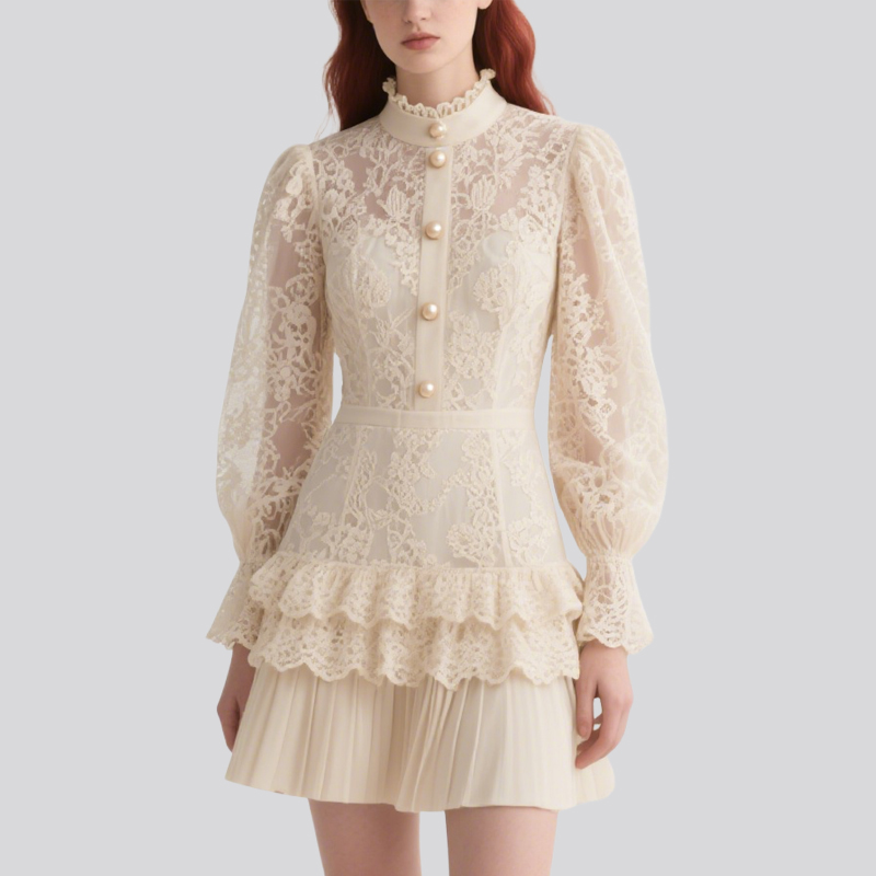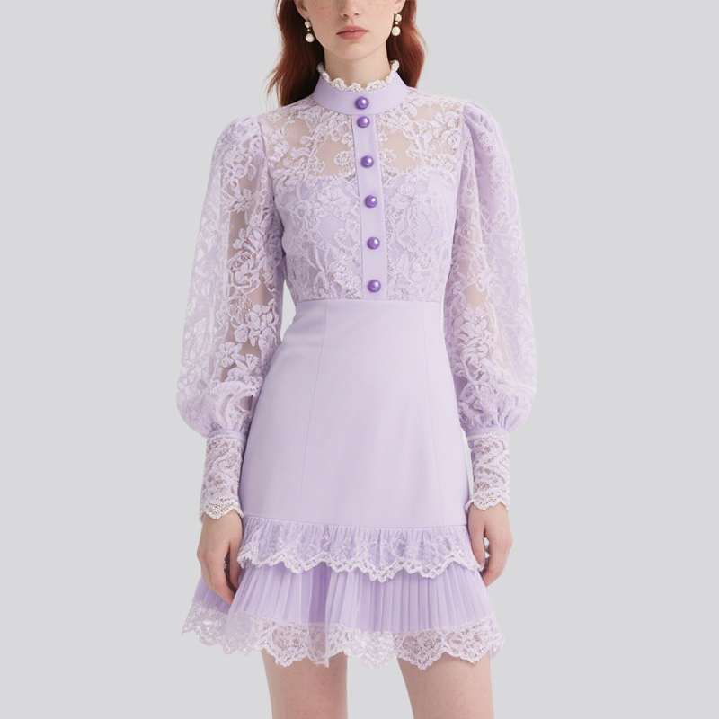 Women’s Lace-Paneled Vintage Long-Sleeved Dress
