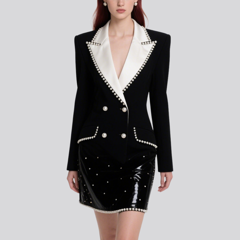 Women’s Chic Long-Sleeved Dress with Pearl Trim