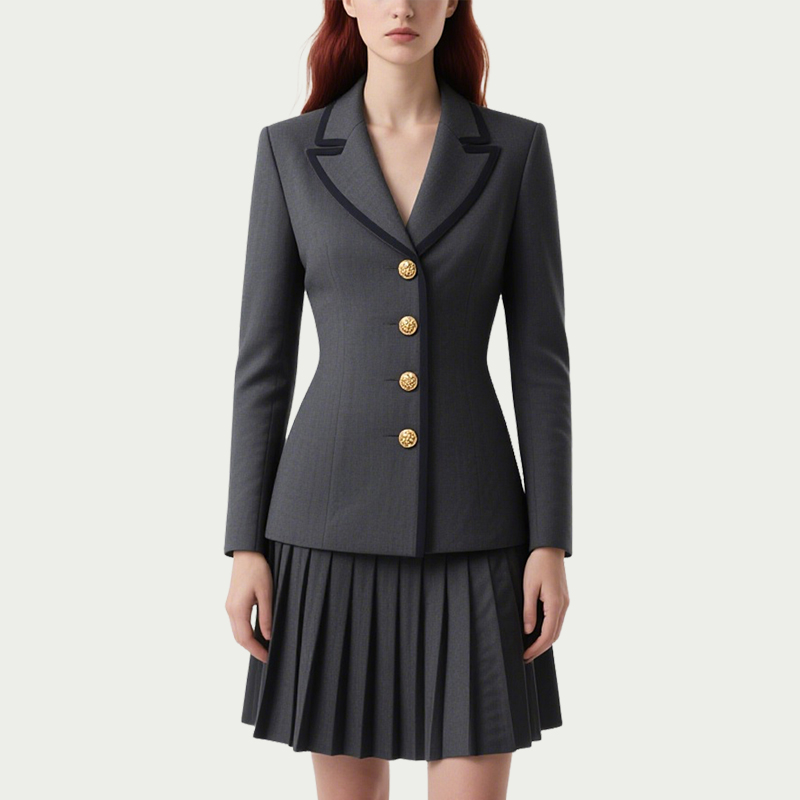 This suit is crafted from a breathable, flexible blend of 63% rayon, 32% nylon, and 5% spandex, ensuring all-day comfort and a flawless fit. Move freely and stylishly in this perfectly tailored women’s blazer. This sophisticated blazer and skirt set is crafted from 71% premium acetate, which is both eco-friendly and silky-soft. It’s easy to … Read More "Retro Fashionable Women’s Tailored Suit Set"