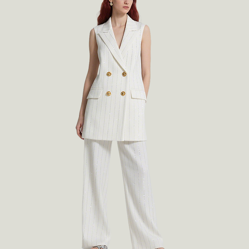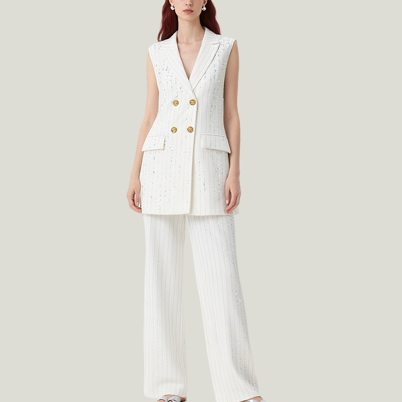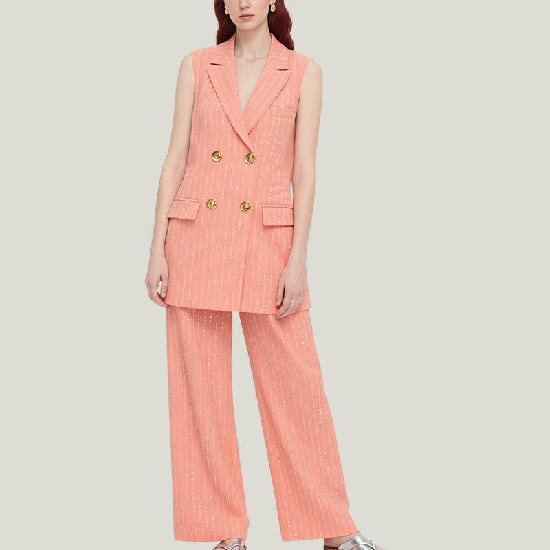 Women’s Fashionable Layered Waistcoat Wide-Leg Trouser Suit