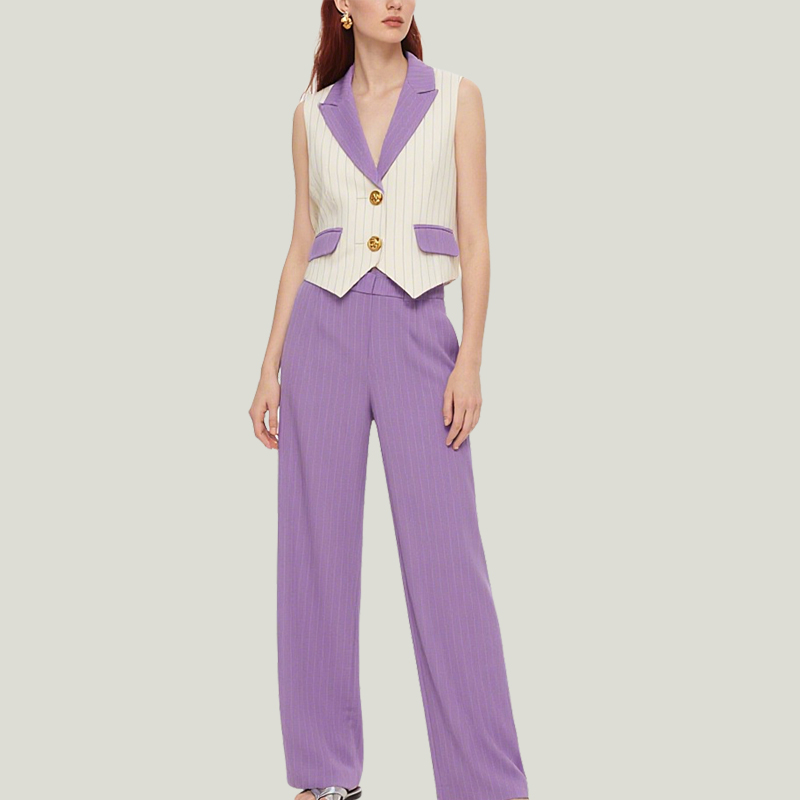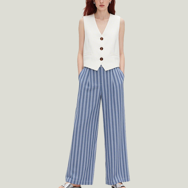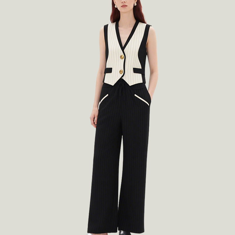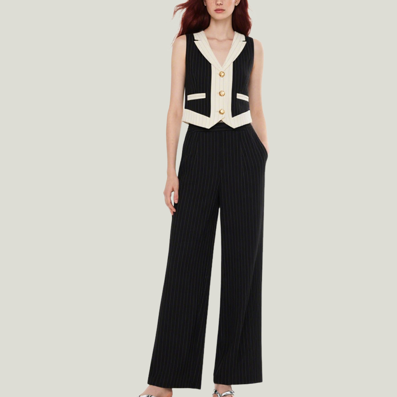 Women’s Fashionable Waistcoat Wide-Leg Trouser Suit For Commuting