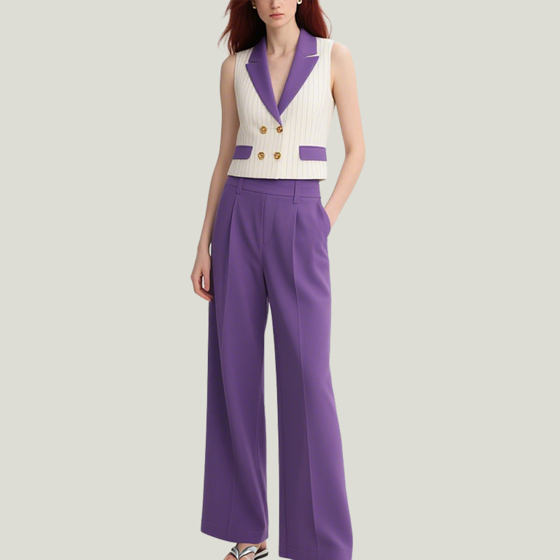 Women’s Preppy Waistcoat Wide-Leg Trouser Suit