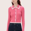 Cute Contrast Collar Women’s Long-Sleeved Top