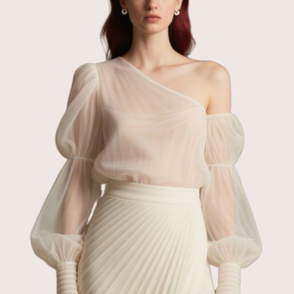 Elegant One-Shoulder See-Through Long-Sleeved Top for Women