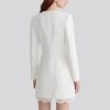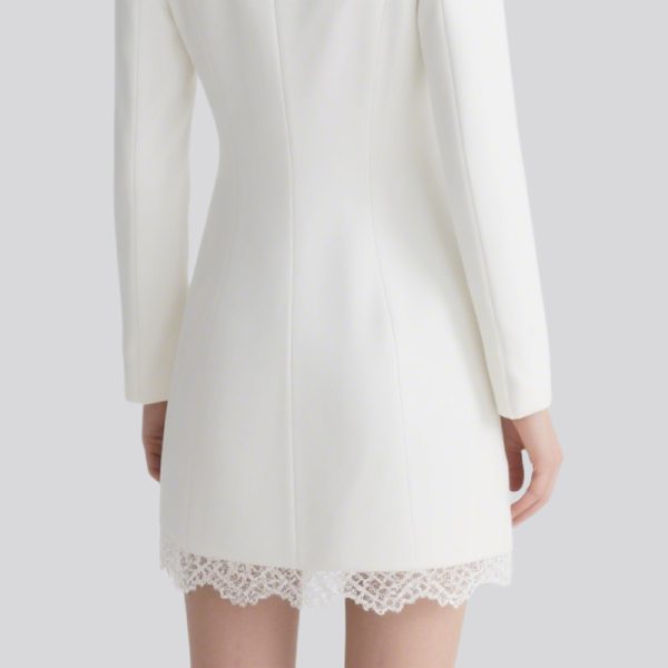 The dress hits just above the knee, revealing slender calves and visually lengthening the legs for a more elevated look.