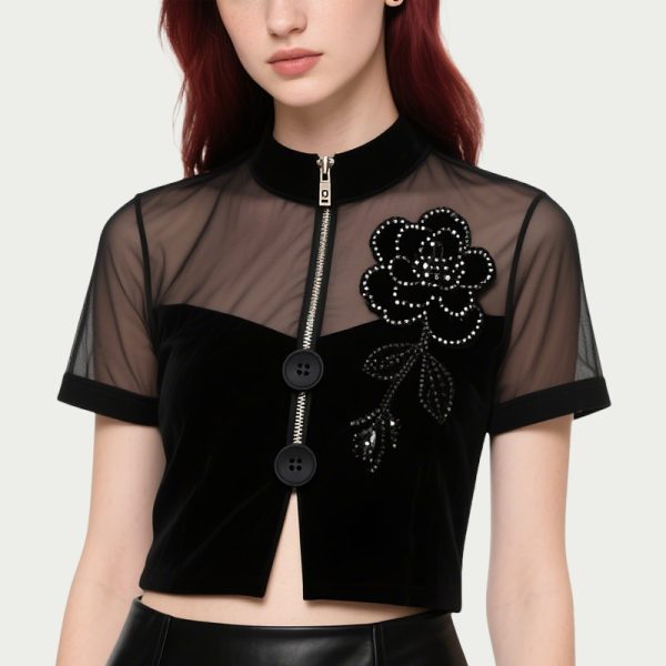 Be the first to review “Exquisite Mesh Embroidery Short-Sleeved Top for Women”