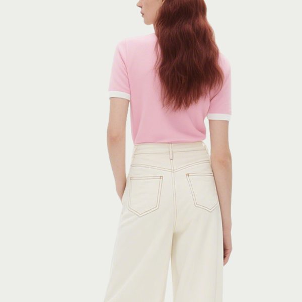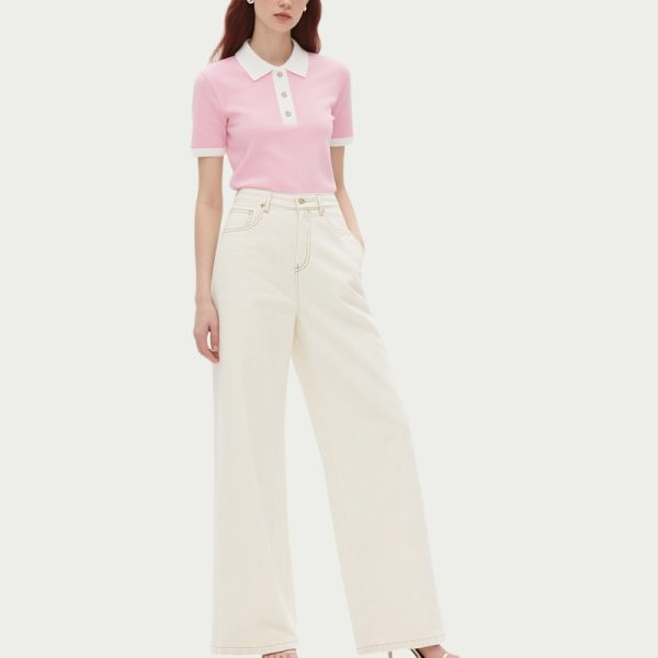 Fashionable Women’s Short-Sleeved Top with Contrasting Collar