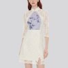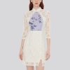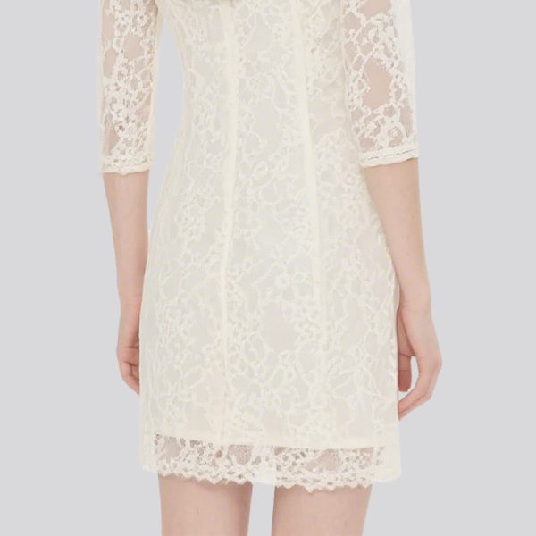 The dress hits just above the knee, revealing slender calves and visually lengthening the legs for a more elevated look.