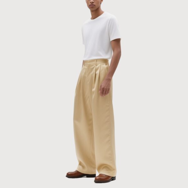 Men’s Beige Wide Leg Pants Vintage Relaxed Fit for Casual Weekends