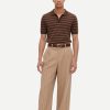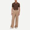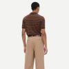 Men’s Brown Striped Polo Shirt Short Sleeve Vintage Comfortable Daily Wear