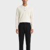 Men’s Cream Long Sleeve Polo Sweater Button Up Elegant Knit