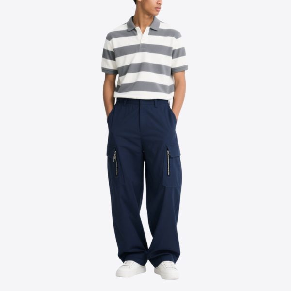 Be the first to review “Men’s Gray and White Striped Short Sleeve Polo Shirt Classic Versatile Wear”