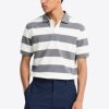 Men’s Gray and White Striped Short Sleeve Polo Shirt Classic Versatile Wear