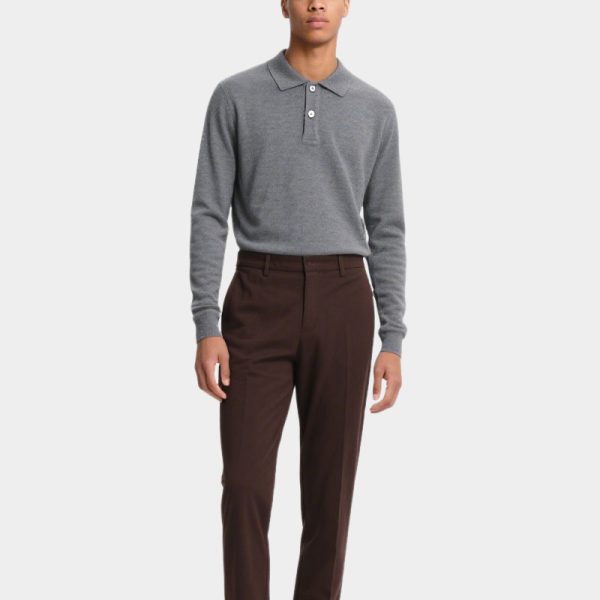 Men’s Gray Long Sleeve Polo Sweater Button Up Elegant Knit for Casual Looks