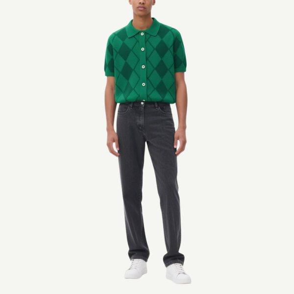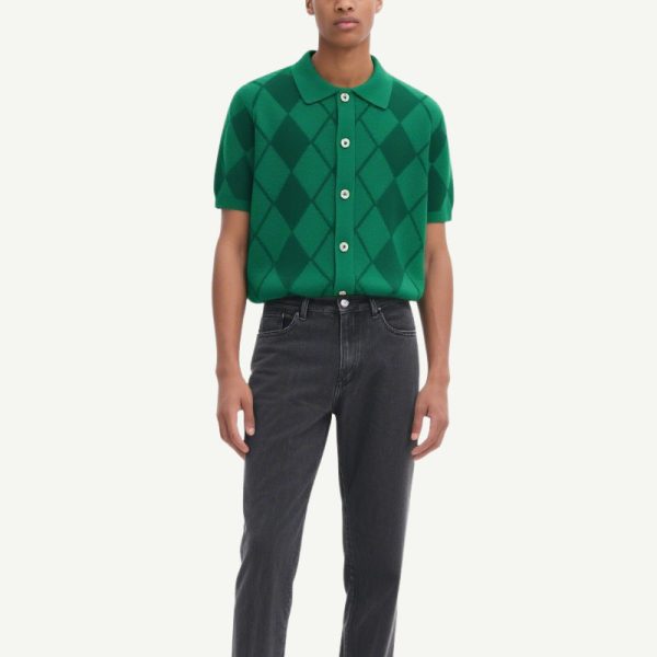 Men’s Green Argyle Knitted Short Sleeve Shirt Breathable
