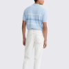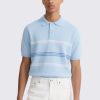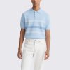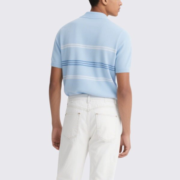 Men’s Light Blue Striped Knit Polo Shirt Short Sleeve Classic Fit
