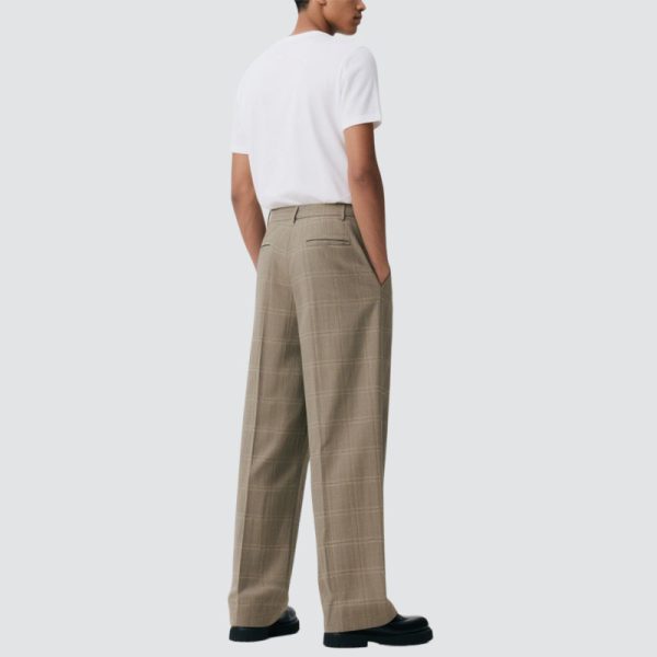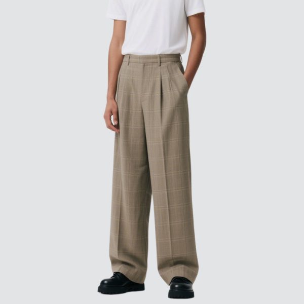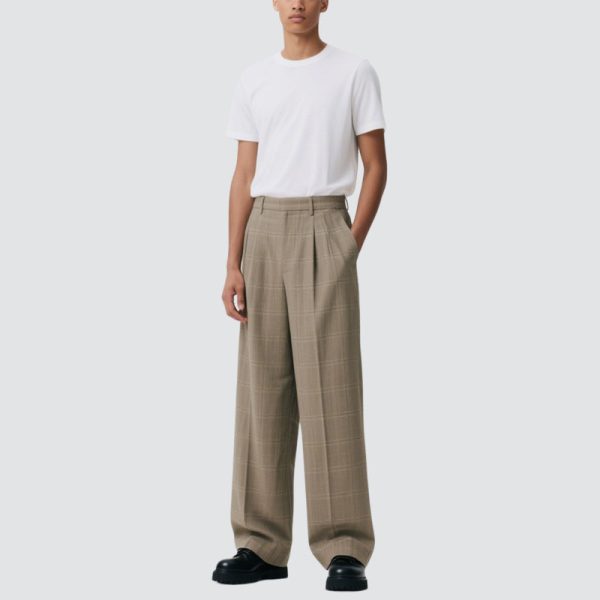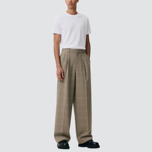 Men’s Light Brown Plaid Wide Leg Pants Loose Fit Vintage Casual
