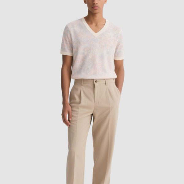 Men’s Light Pink Patterned V-Neck Short Sleeve Tee
