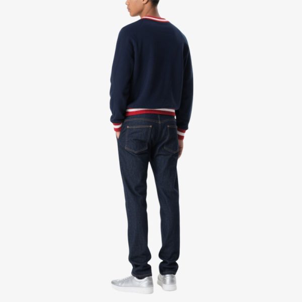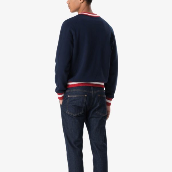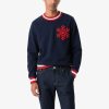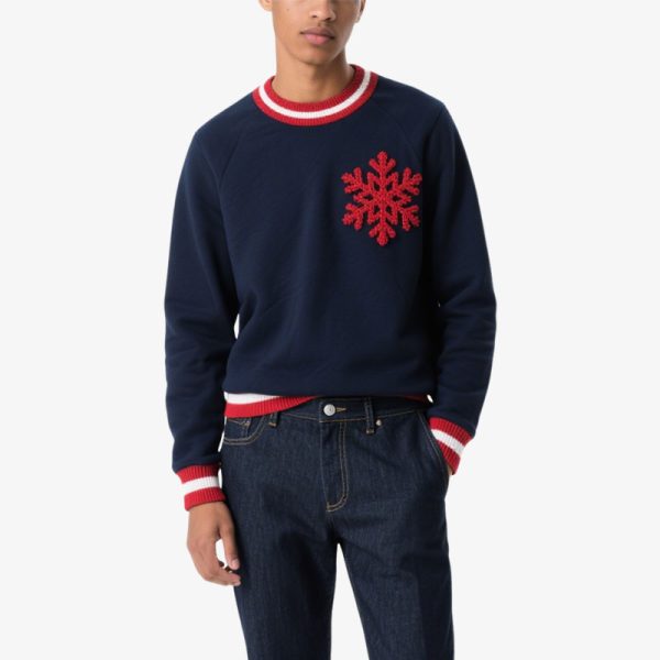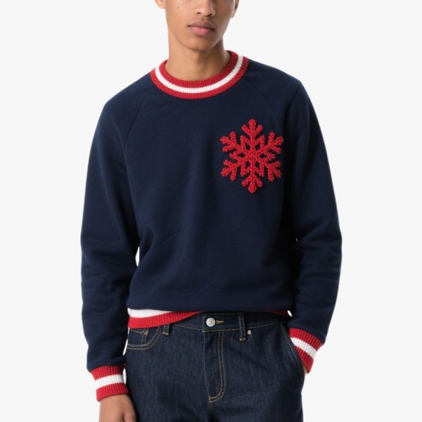 Men’s Navy Crew Neck Sweatshirt with Red Snowflake Patch Casual Style